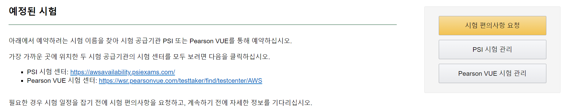 aws시험기관으로 다음과 같이 PSI와 Pearson 두 곳이 있는데 PSI시험이 훨씬 많습니다. PSI시험센터로 클릭.